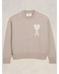 Ami Mens Oversized Heart Logo Jumper Light Beige