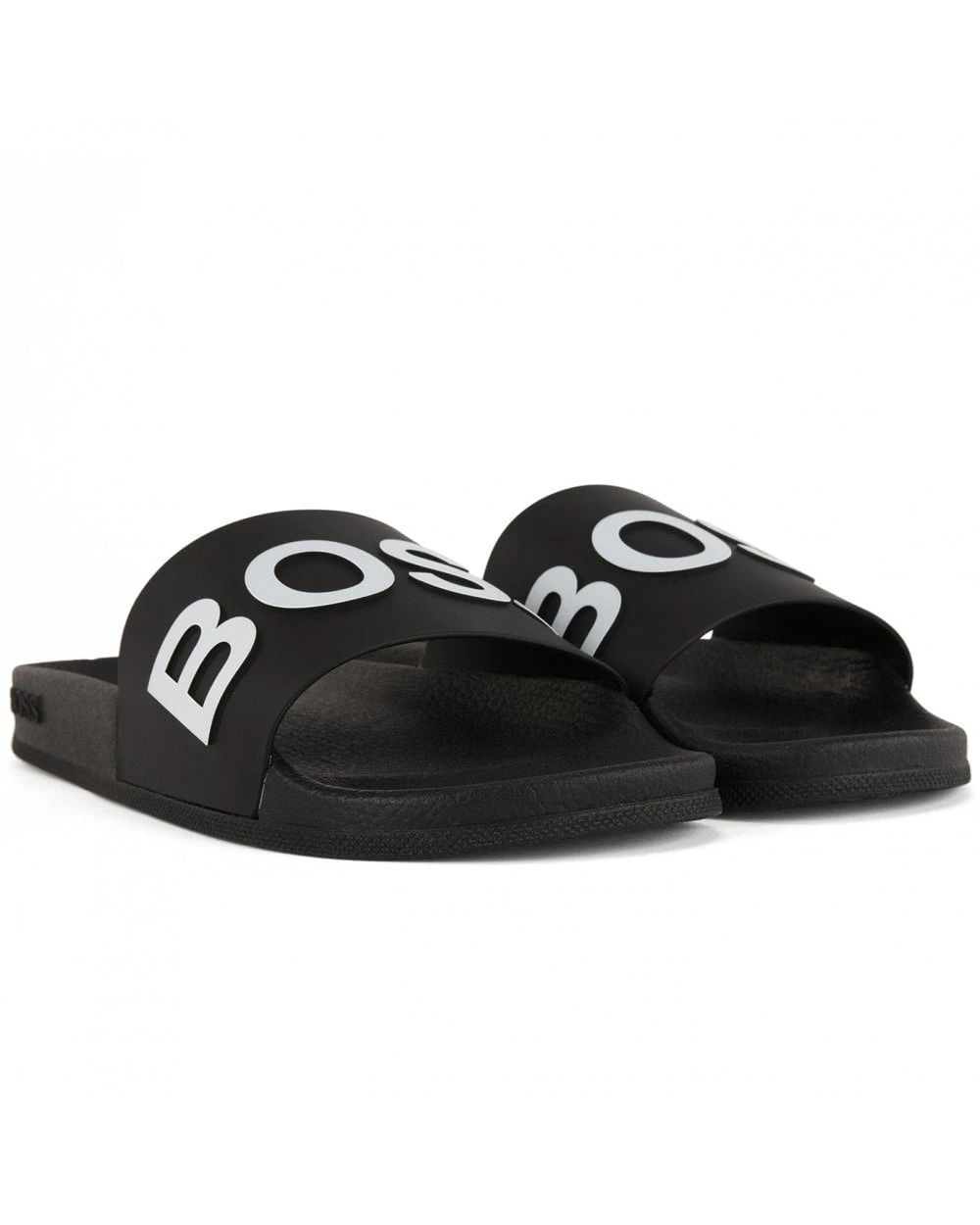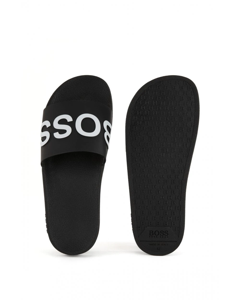 - BOSS Mens Black Italian-Made Logo Strap Slides