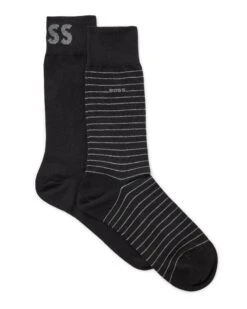 - BOSSÂ Mens Marc Black Two-Pack Solid/Striped Regular Length Socks