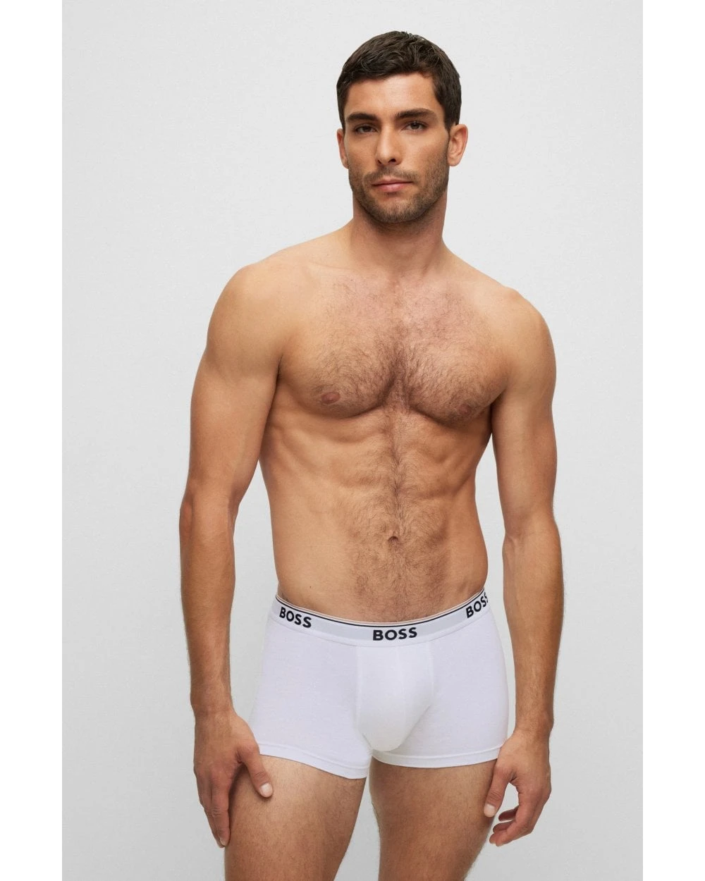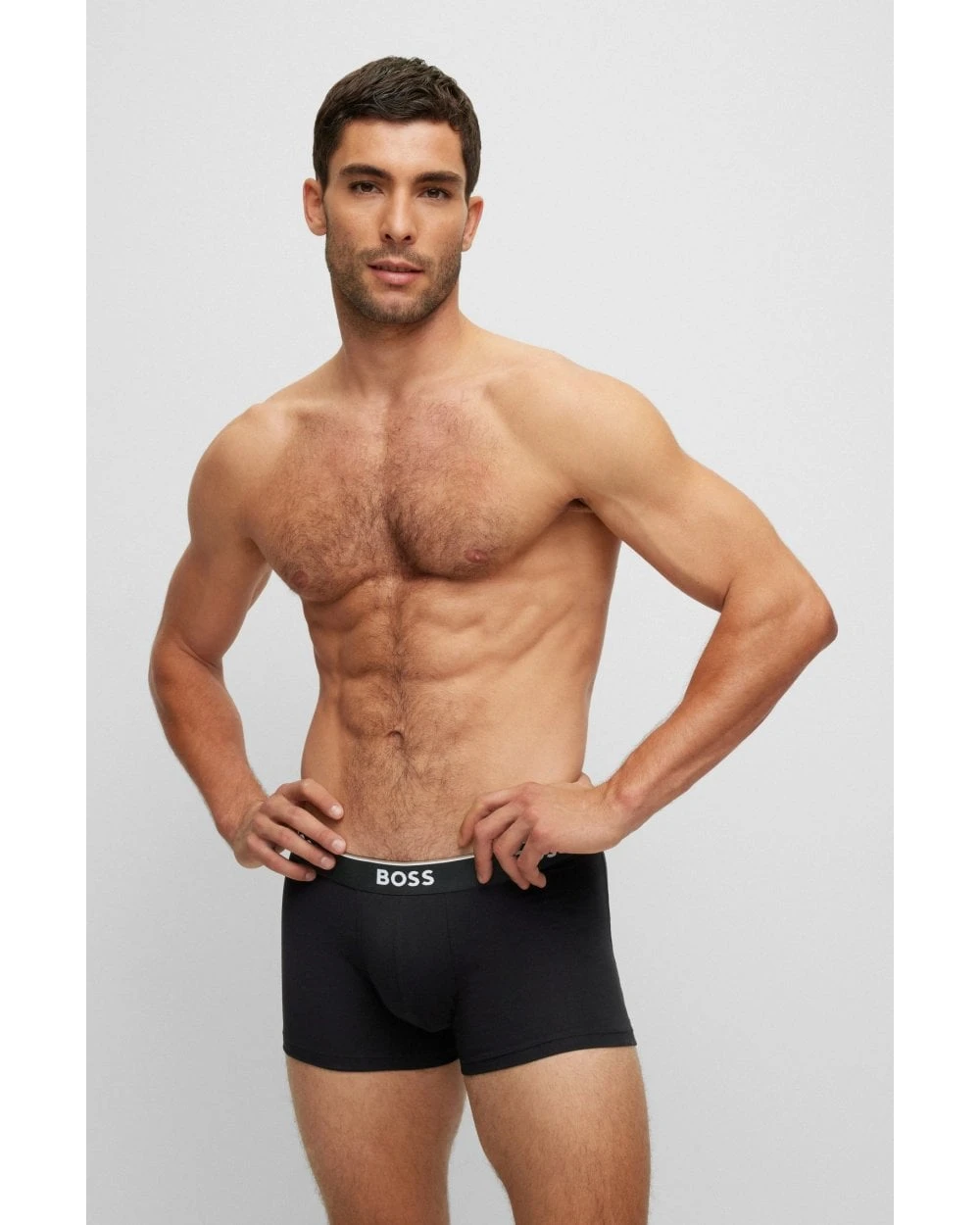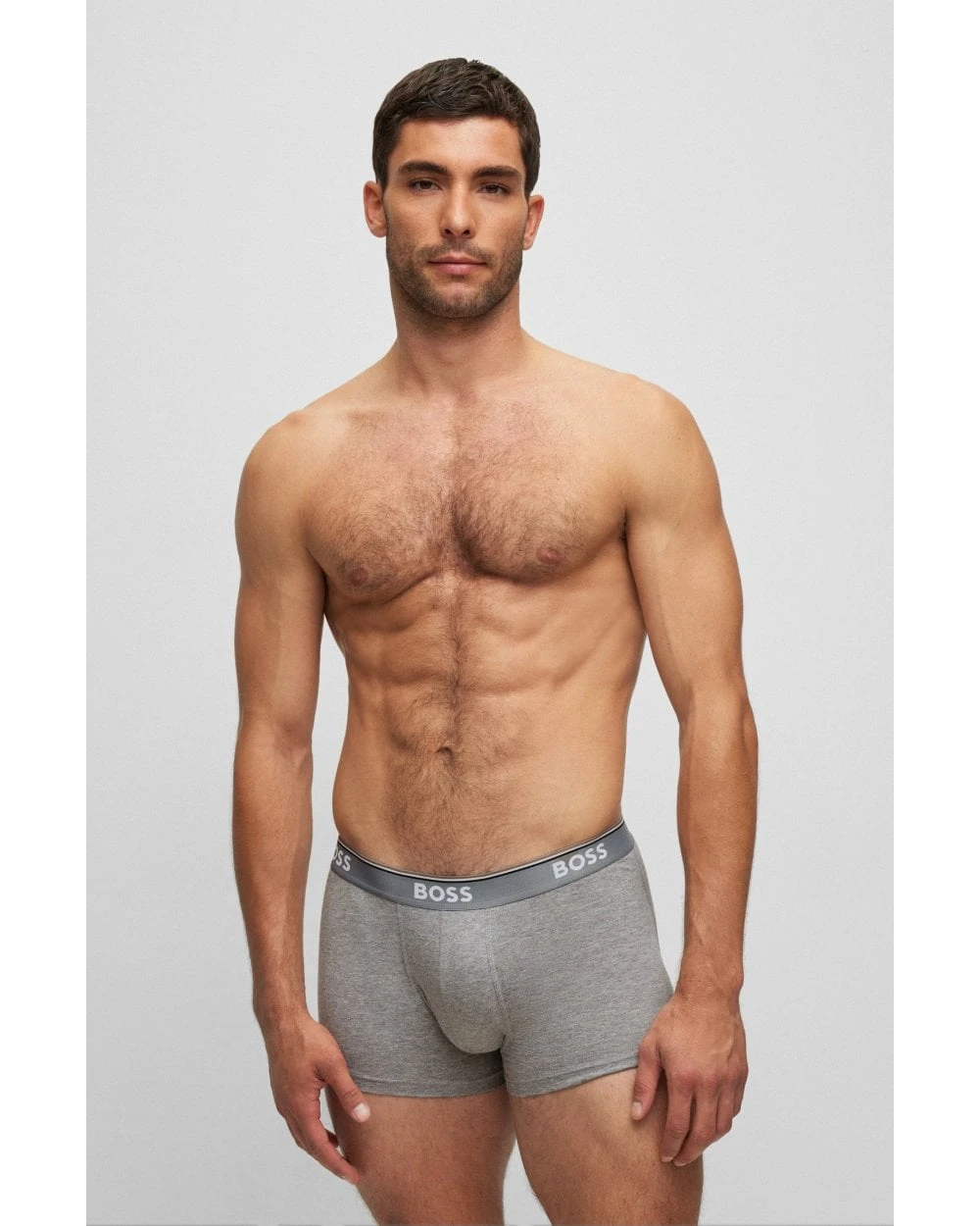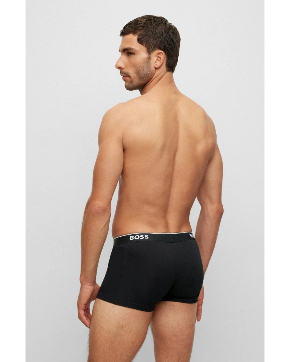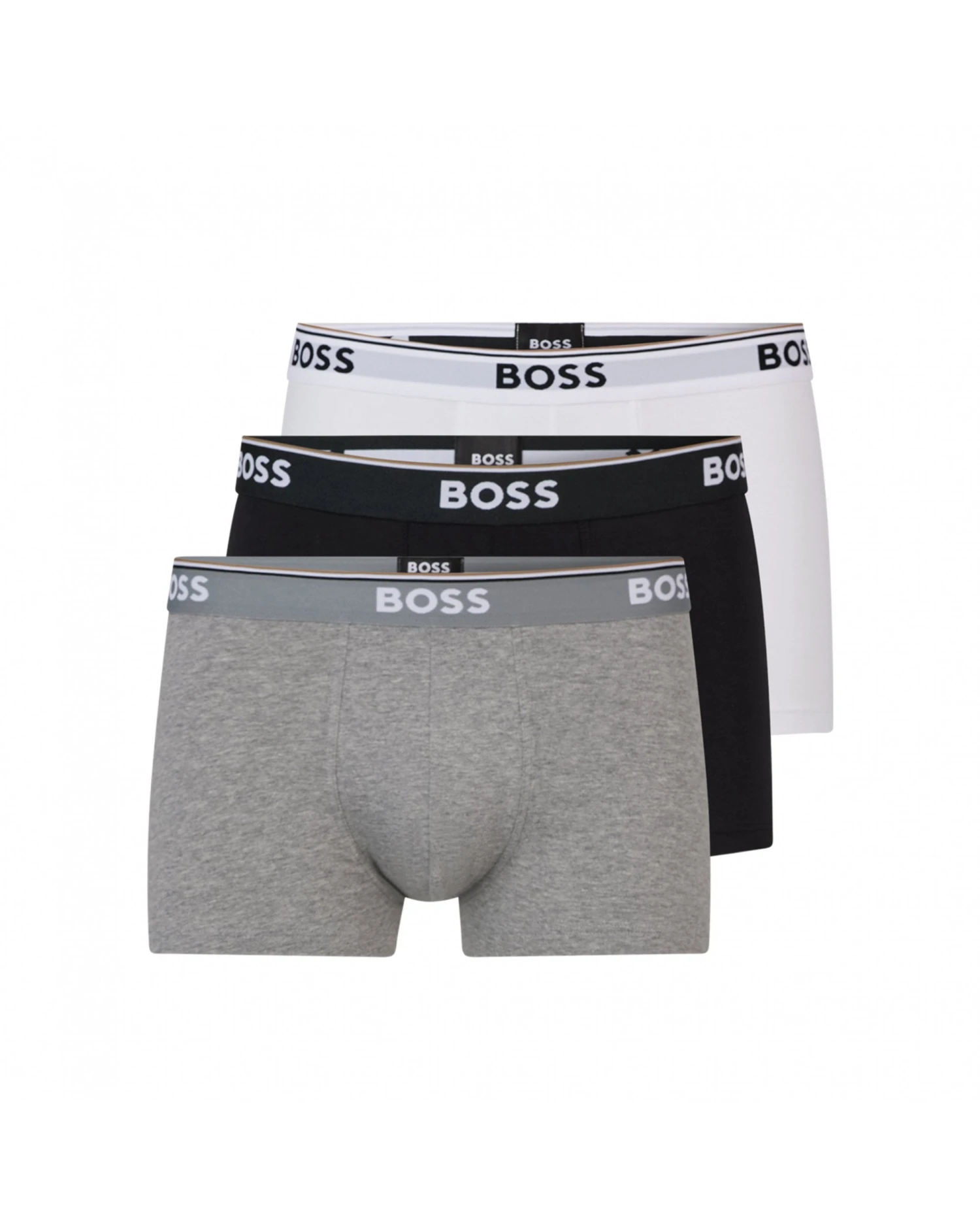 - BOSS Mens Three-Pack Stretch Cotton Logo Trunks, Black/Grey/White Boxers