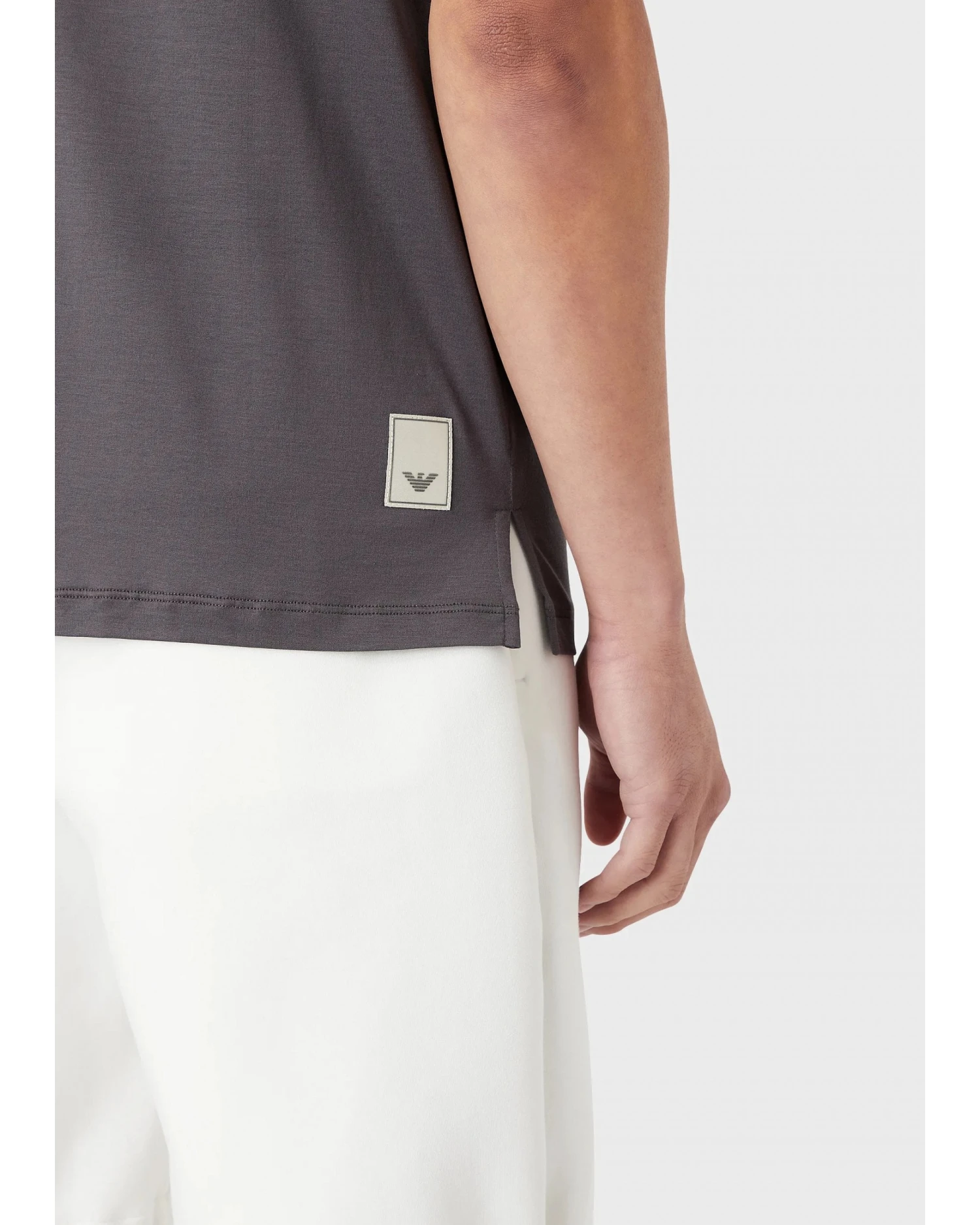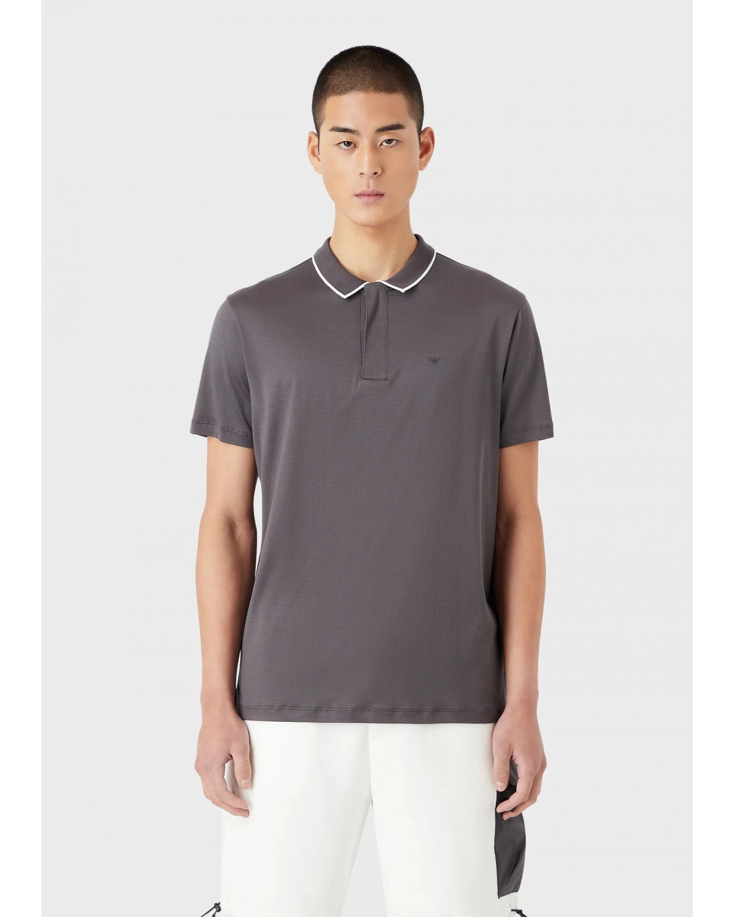 - Emporio Armani Mens Grey Travel Essentials Tencel Blend Jersey Polo Shirt