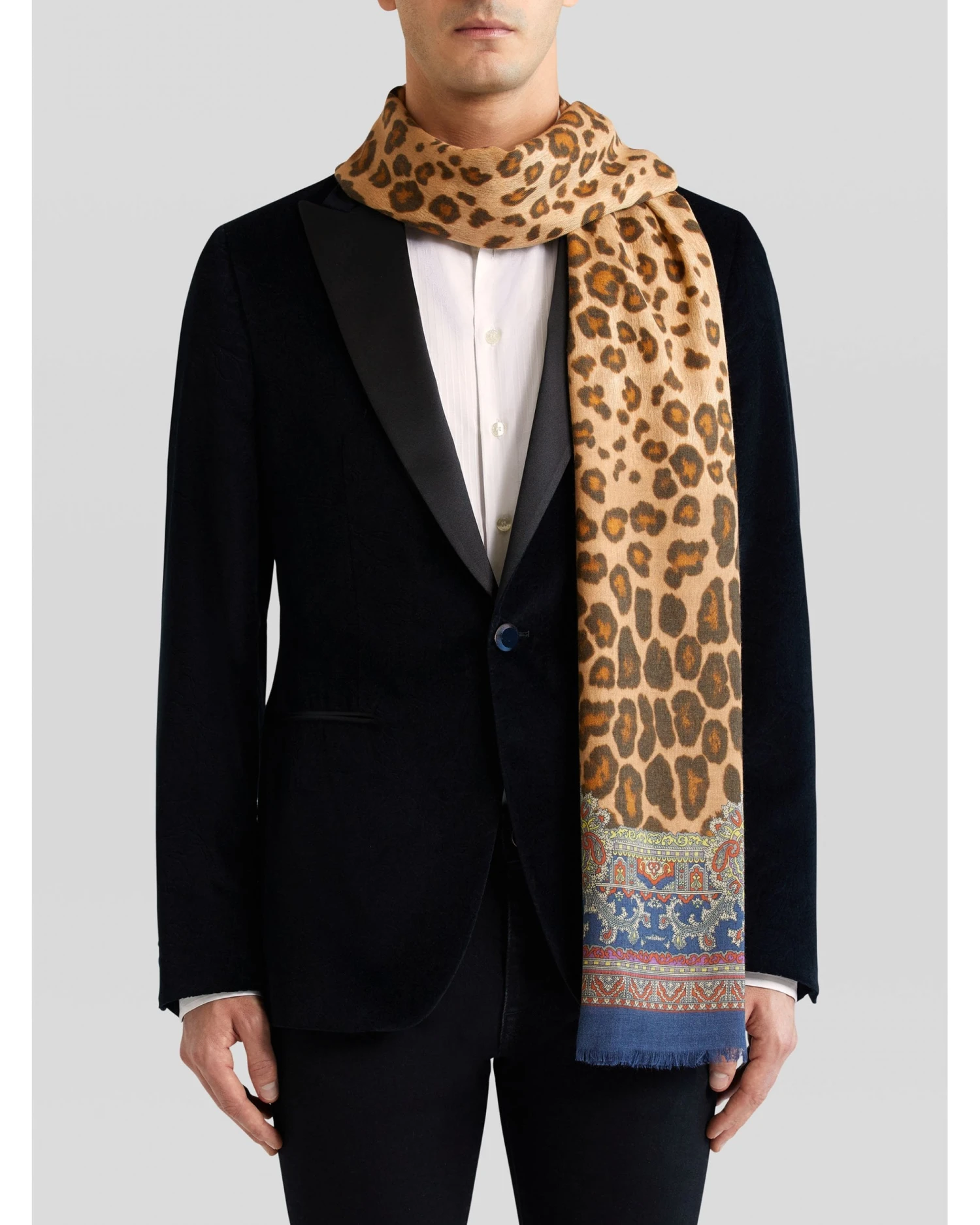 - Etro Mens Beige Animal Print Ornamental Frame Scarf
