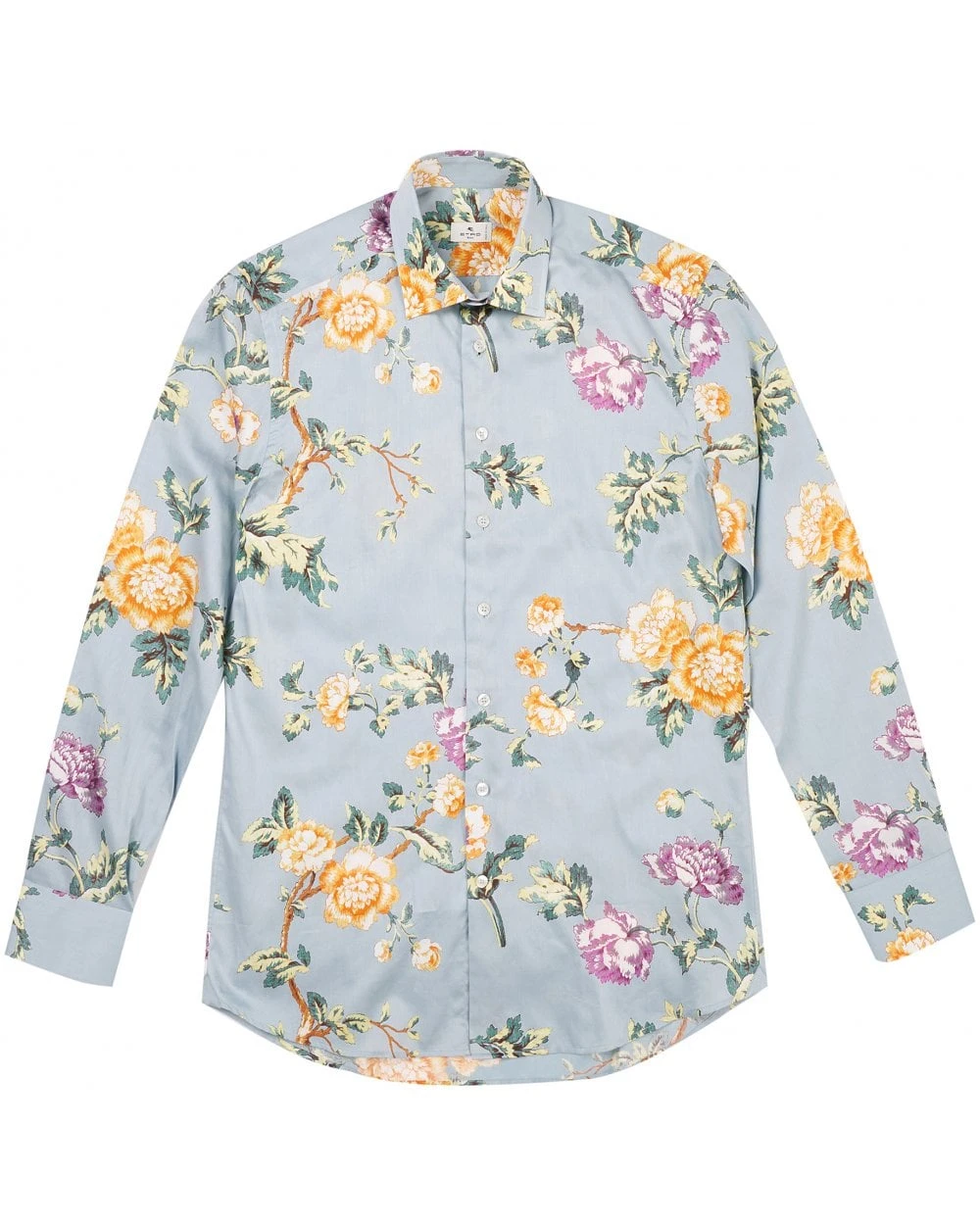 - Etro Mens Sky Blue Floral Print Shirt