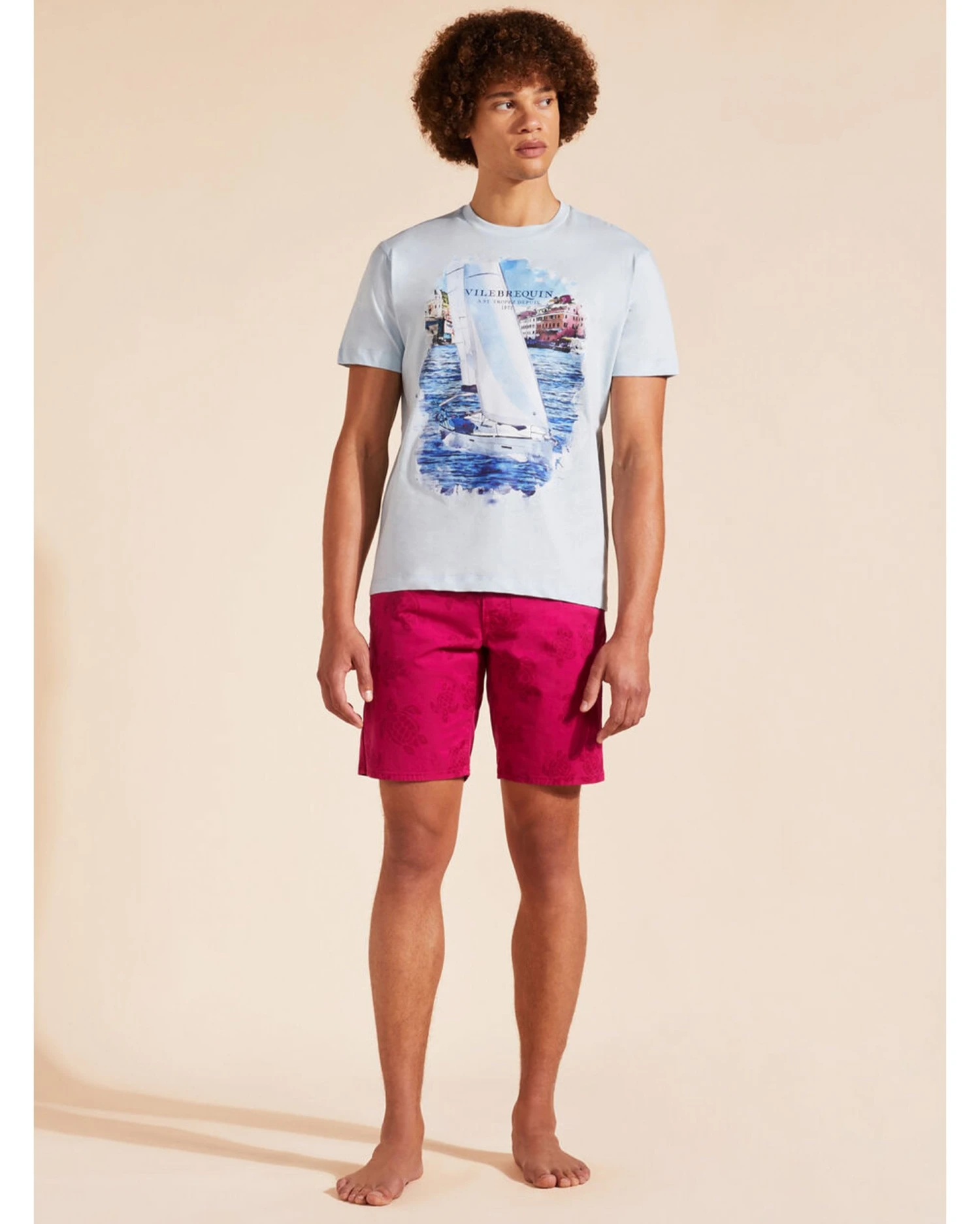 - Vilebrequin Mens Tropez Portisol Sailing Boat T-Shirt Sky Blue